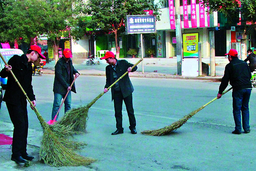 10月26日上午,淇县农信联社14名青年志愿者走上街头,开展“我与环卫工人零距离”体验活动,帮助环卫工人对红旗路党校至中山街口的路面进行清扫,亲身体验了环卫工人的工作,以自己的实际行动感召更多的人关注环卫工人,珍惜、爱护我们的环境。张保华 摄