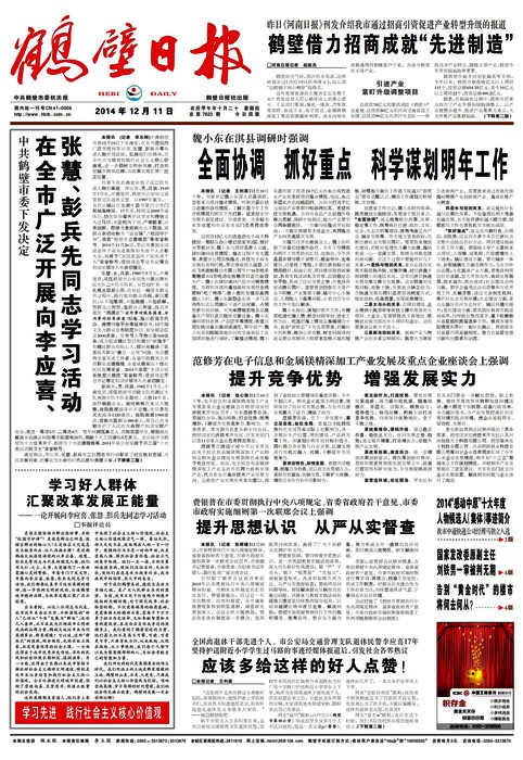 - 昨日《河南日报》刊发介绍我市通过招商引资促进产业转型升级的报道鹤壁借力招商成就“先进制造”