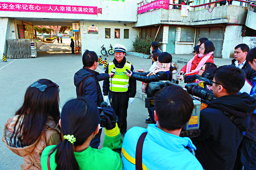 12月16日至17日,省委宣传部组织新华社、人民日报、河南日报、河南电视台等15家中央、省级新闻媒体组成的联合采访团来到我市采访英模群体,对李应喜、张慧、彭兵先等进行了深入采访。图为12月17日采访李应喜时的情景。 本报记者 李国庆 摄
