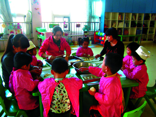 冬至将到,12月17日,市实验幼儿园邀请家长到班级和孩子们一起包饺子,家长们擀皮、包饺子,孩子们帮爸爸妈妈按皮、撒面粉,其乐融融。王晓霞 摄