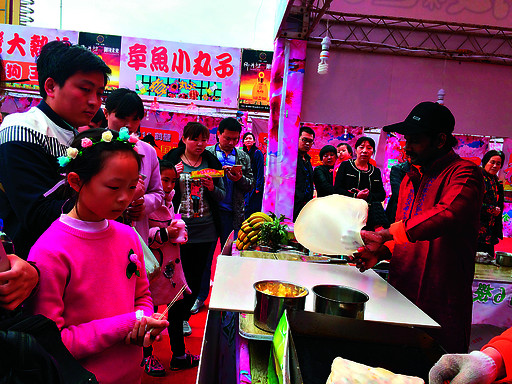 台南五香肉卷、泰国榴莲酥、天津狗不理包子、印度风味飞饼……4月4日,记者在中凯国际美食街和新世纪广场西区步行街看到,来自世界各地的50多种特色美食引得游客争相购买。