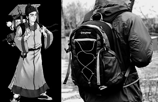 这个游山器是用竹子为材料编制而成,坚固而质轻,可以方便地携带日常用品和其它登山用品。这种“游山器”相当于现在的背包。不过现代具有较强背负系统的背包可比这“游山器”方便多了。