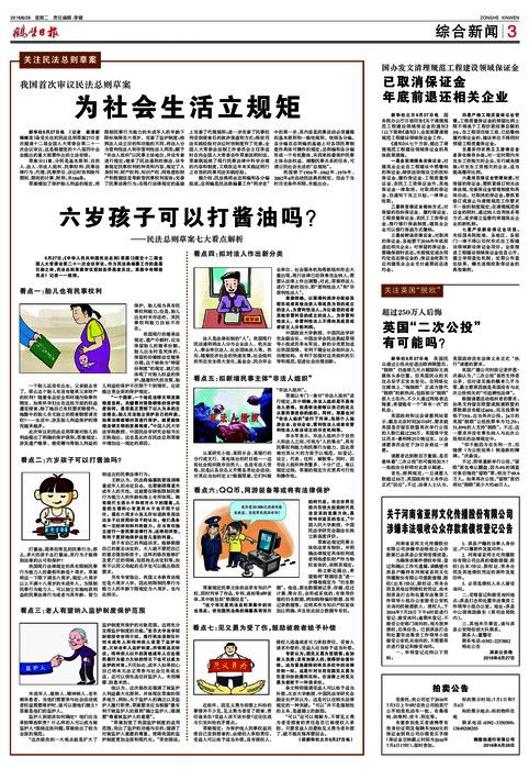 六岁孩子可以打酱油吗?———民法总则草案七大看点解析