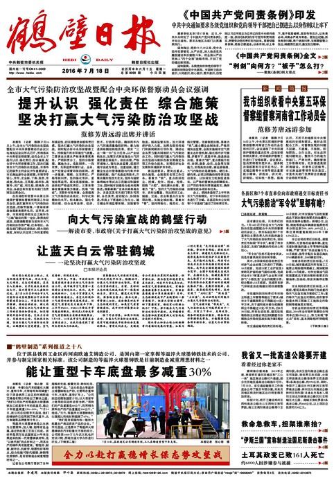 - 让蓝天白云常驻鹤城——一论坚决打赢大气污染防治攻坚战□本报评论员