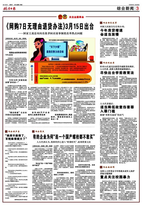 网购7日无理由退货办法》3月15日出台 ——国家工商总局局长张茅回应商事制度改革热点问题