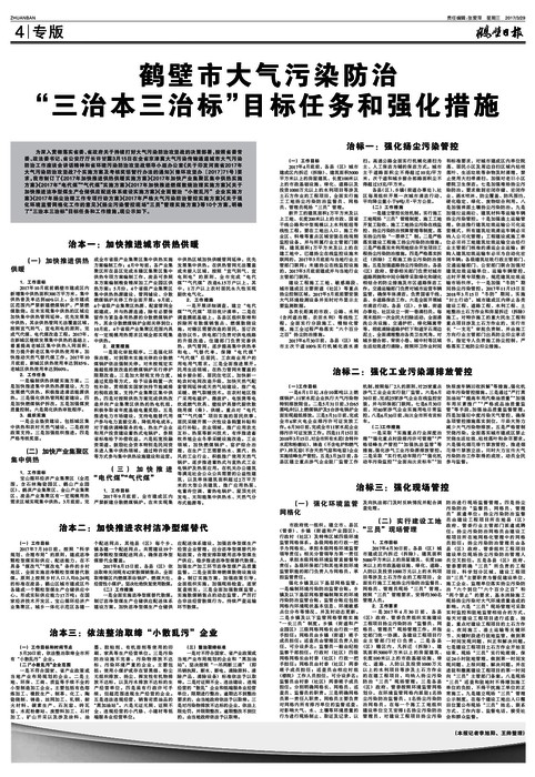 鹤壁市大气污染防治 “三治本三治标”目标任务和强化措施