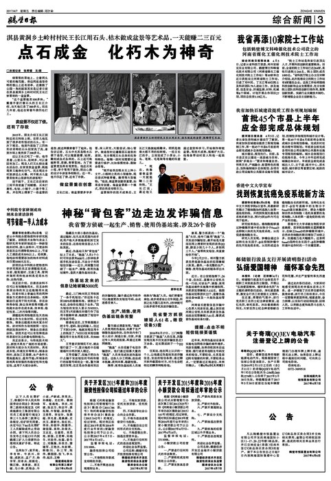 - 淇县黄洞乡土岭村村民王长江用石头、枯木做成盆景等艺术品,一天能赚二三百元点石成金化朽木为神奇