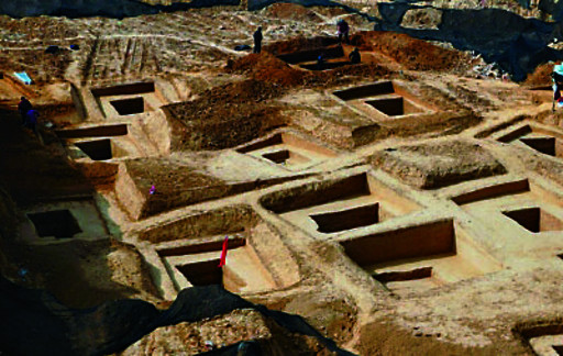 记者随后来到现场。在郑州西郊常庄水库西侧300米处,是正在修建的雪松路南延工地,在其东侧一个围挡内就是考古现场。场内有13个已经开挖出来的墓葬,南侧有两个墓坑正在挖掘,10多名工作人员在分批小心处理。