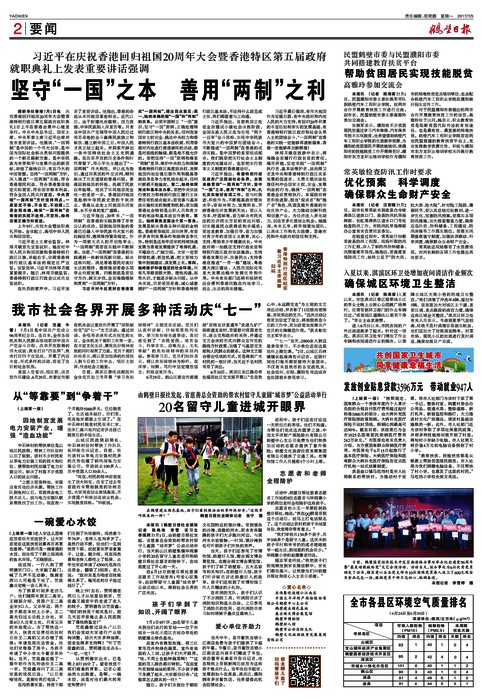 习近平在庆祝香港回归祖国20周年大会暨香港特区第五届政府就职典礼上发表重要讲话强调 坚守“一国”之本 善用“两制”之利