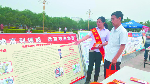 中国银行鹤壁分行工作人员向市民介绍防范非法集资的知识。