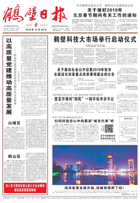 中共鹤壁市委办公室鹤壁市人民政府办公室关于做好2019年元旦春节期间有关工作的通知