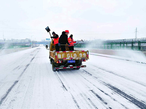 2月10日,因降雪我市部分道路出现结冰等情况。市公路局立即启动应急预案,第一时间安排工作人员对107国道、大白线、葛嘴线、新老区快速通道、鹤浚快速通道等多条重要干线公路桥梁、急弯、陡坡、长坡、重要交叉口和隧道洞口等易结冰路段进行撒盐铲雪保通。截至当日中午12时,全市公路系统累计出动养护工480余人,各种机械车辆50余台,撒盐约80吨,融雪融冰,保障了道路安全畅通。图为工作人员在新老区快速通道南水北调桥段撒盐除雪。