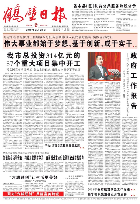 政府工作报告———二〇一九年二月十四日在鹤壁市第十一届人民代表大会第二次会议上鹤壁市人民政府市长郭浩