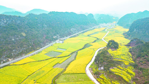 近日,贵州省六盘水市六枝特区木岗镇的万余亩油菜花竞相绽放,构成美丽的春日画卷。这是3月12日无人机拍摄的油菜花田。 新华社记者 陶亮 摄