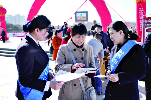 中原银行鹤壁分行组织宣传人员到新世纪广场开展集中宣传活动。雒赵飞 摄