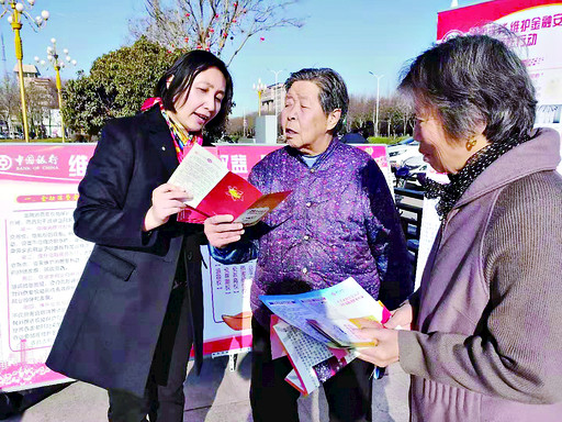 中国银行鹤壁分行组织宣传人员在新世纪广场开展宣传活动。汪丽娜 摄