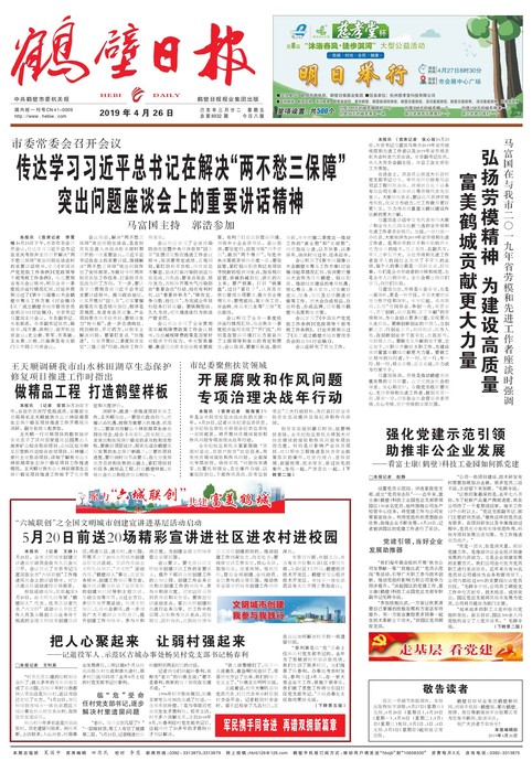 - 马富国在与我市二〇一九年省劳模和先进工作者座谈时强调弘扬劳模精神为建设高质量富美鹤城贡献更大力量