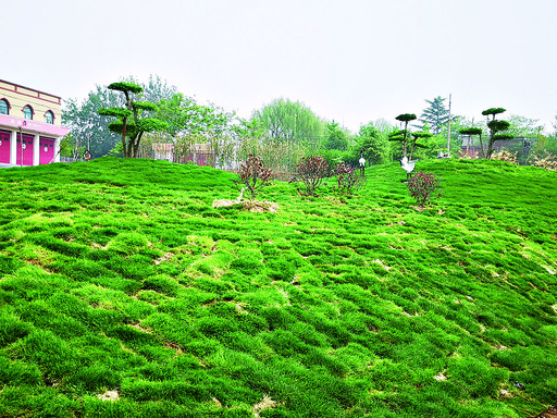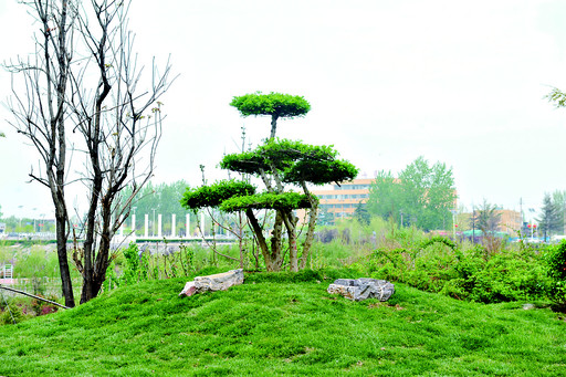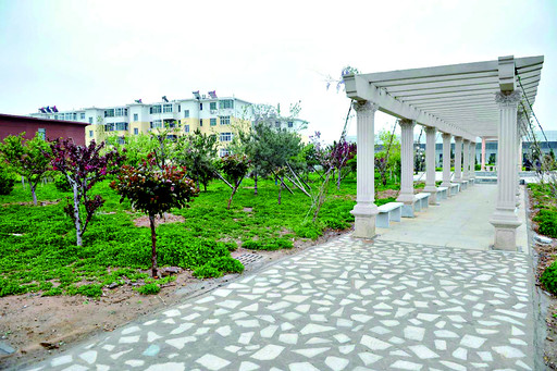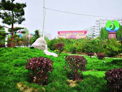 中山路与葛嘴线交叉口的小花园内植物错落有致,成为一片美丽的风景。