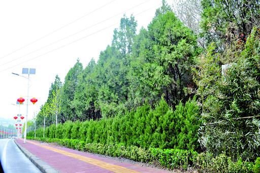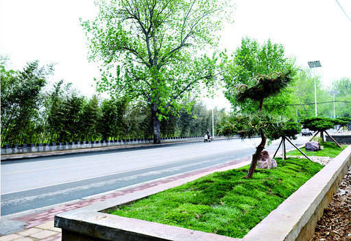 行走在鹤山区的街道上,中山路、鹤源路、东券路等道路两旁的竹子、油松、蜀桧、麦冬等尽收眼底。放眼望去,临街的墙体以徽派文化为主题设计了建设方案,靠近墙体部分则以景观植物、山、石、水、土等就近取材,进行了精心设计、修造,将鹤山区打造成了一座园林“盆景”城市。