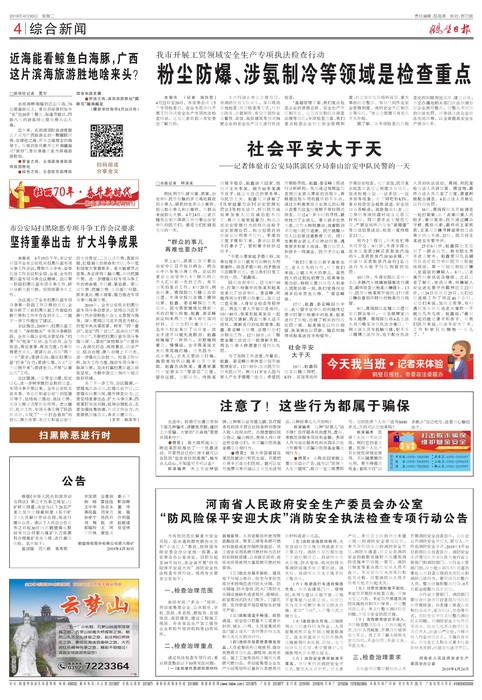 社会平安大于天———记者体验市公安局淇滨区分局泰山治安中队民警的一天