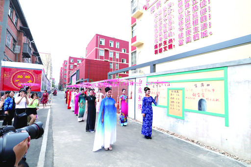 在以“光阴的故事”为主题的奔九巷,旗袍秀成为一道亮丽的风景线。
