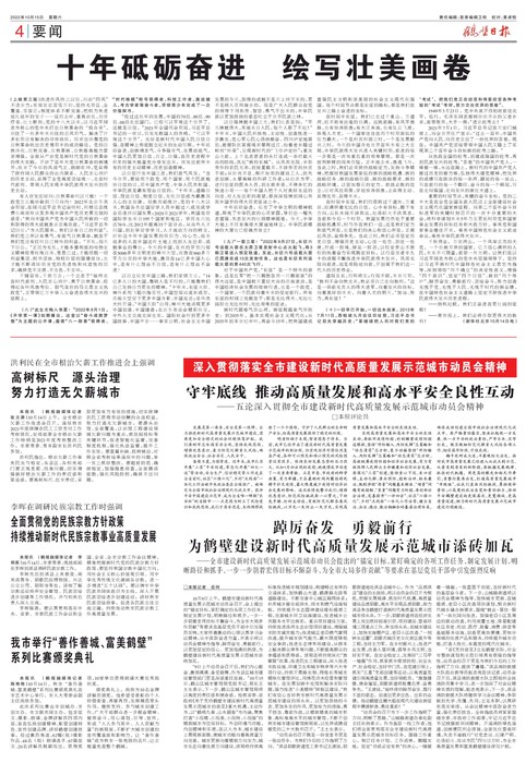 踔厉奋发 勇毅前行 为鹤壁建设新时代高质量发展示范城市添砖加瓦 ——全市建设新时代高质量发展示范城市动员会提出的“锚定目标,紧盯确定的各项工作任务,制定发展计划,明晰路径和抓手,一步一步朝着宏伟目标不懈