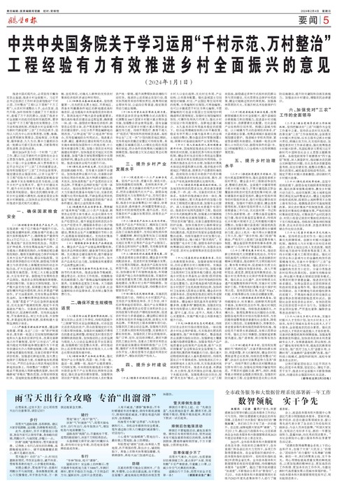 中共中央国务院关于学习运用“千村示范、万村整治”工程经验有力有效推进乡村全面振兴的意见 (2024年1月1日)